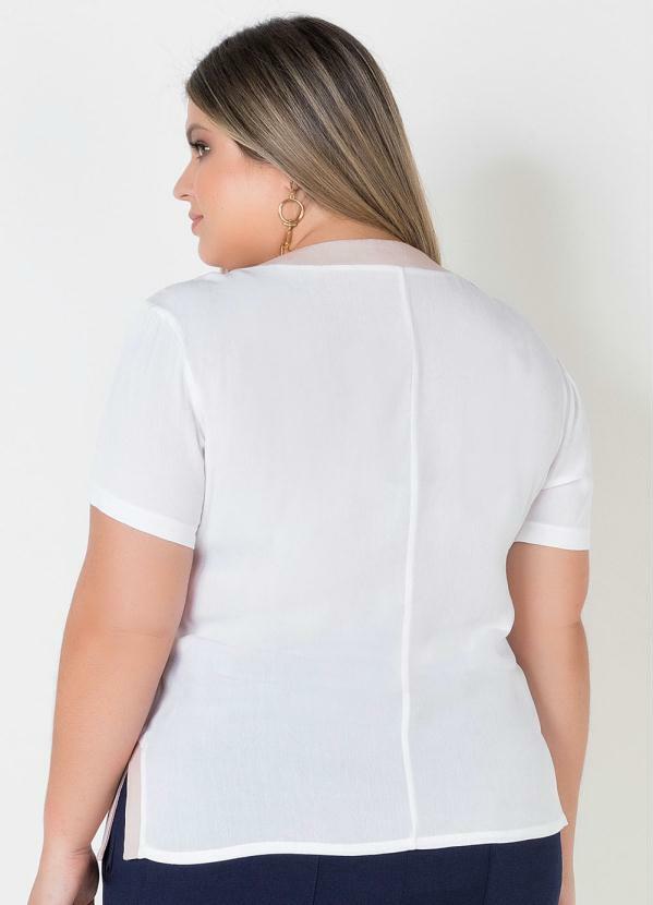 Blusa Plus Size Branca com Detalhes em Rosa - Mink